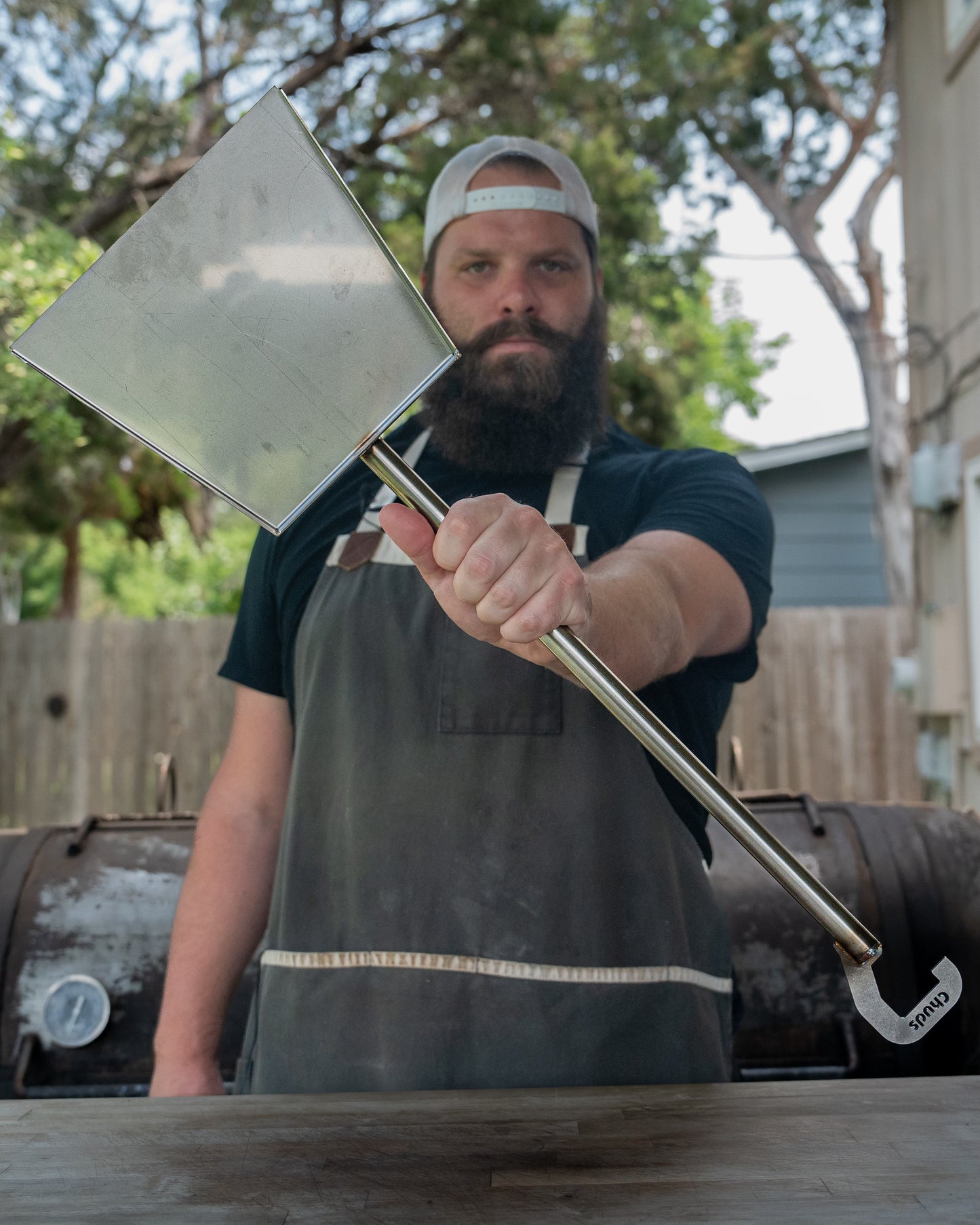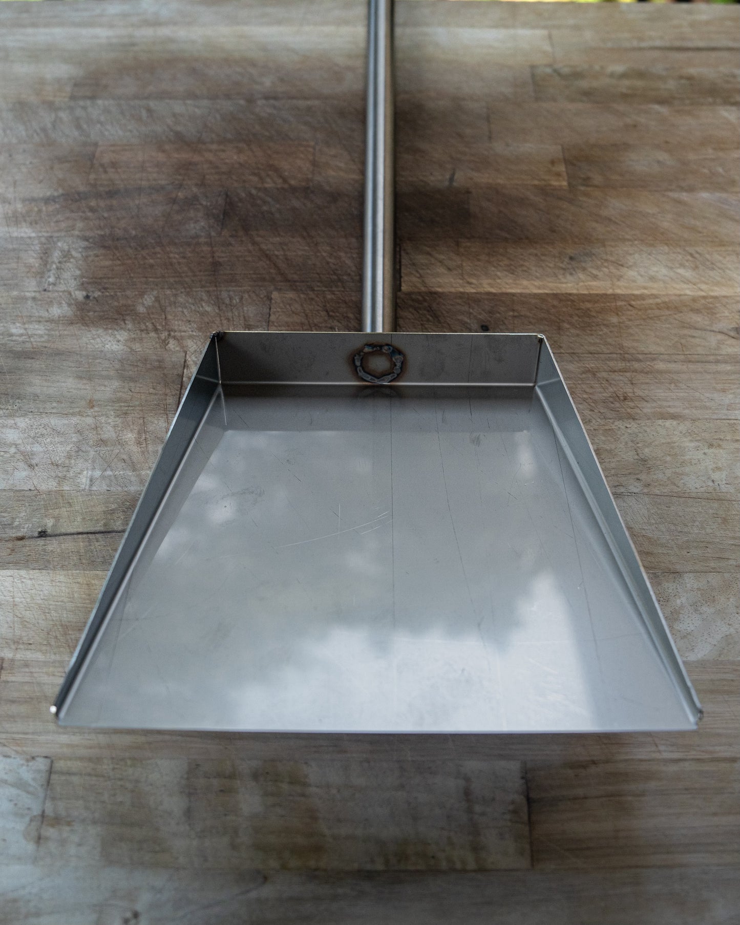 This lightweight shovel is perfect for moving lit charcoal or logs, or scooping ash. Made of fully welded 304 stainless steel so it won't rust and will last a lifetime. Measures 28" long, has an angled head so it's easy to use with one hand, and has a hook for easy storage.