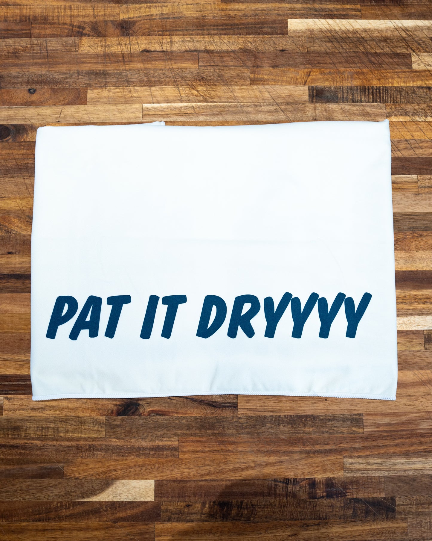 Large microfiber towel with the Clean Weenie logo in the center and Pat it Dry on the edge.