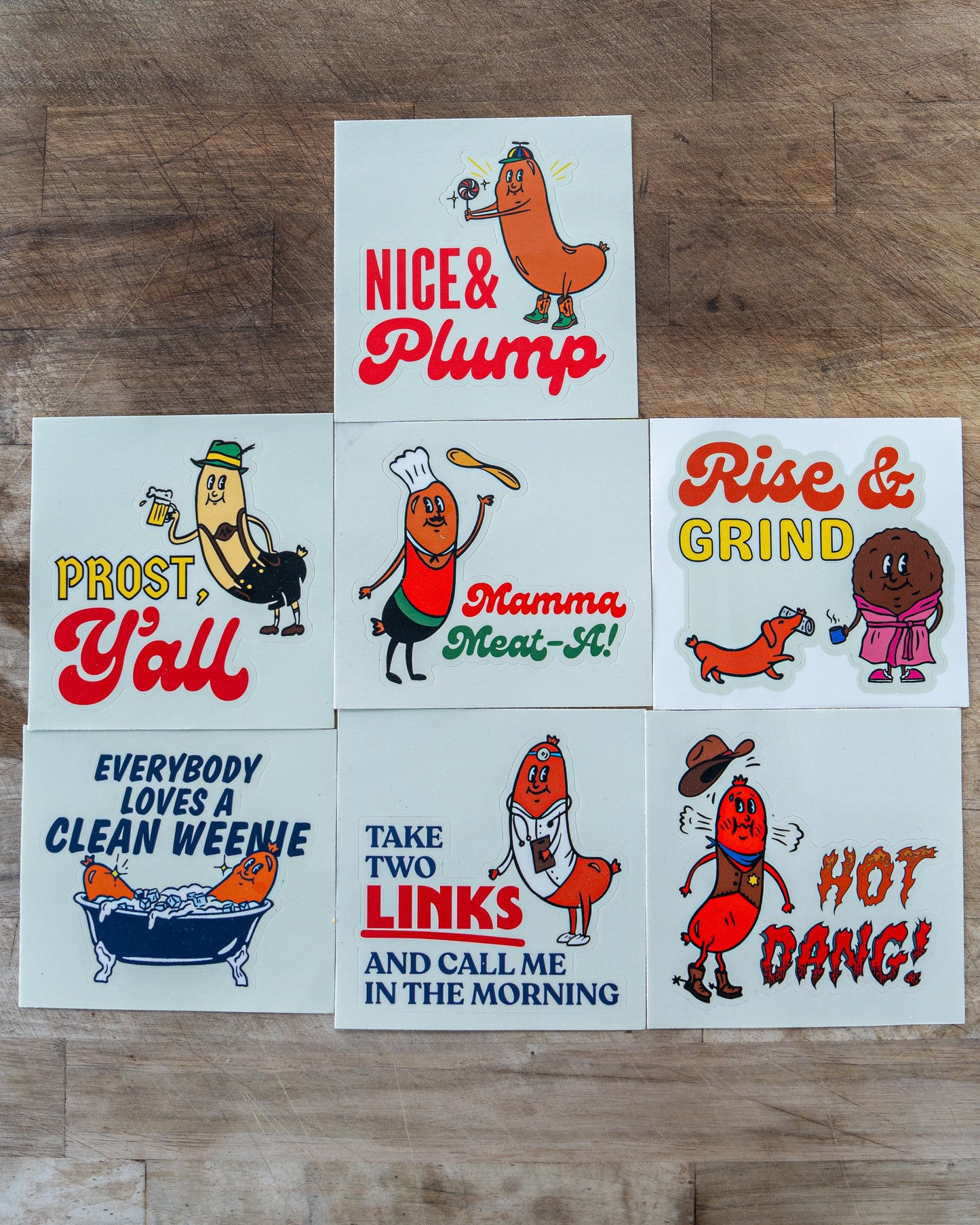 Our Sausage Party Sticker Pack is the perfect way to add a touch of humor and personality to your belongings! Featuring a collection of quirky, bold, and fun sausage-themed designs, this pack is made with high-quality, durable vinyl to ensure they stick around for the long haul.