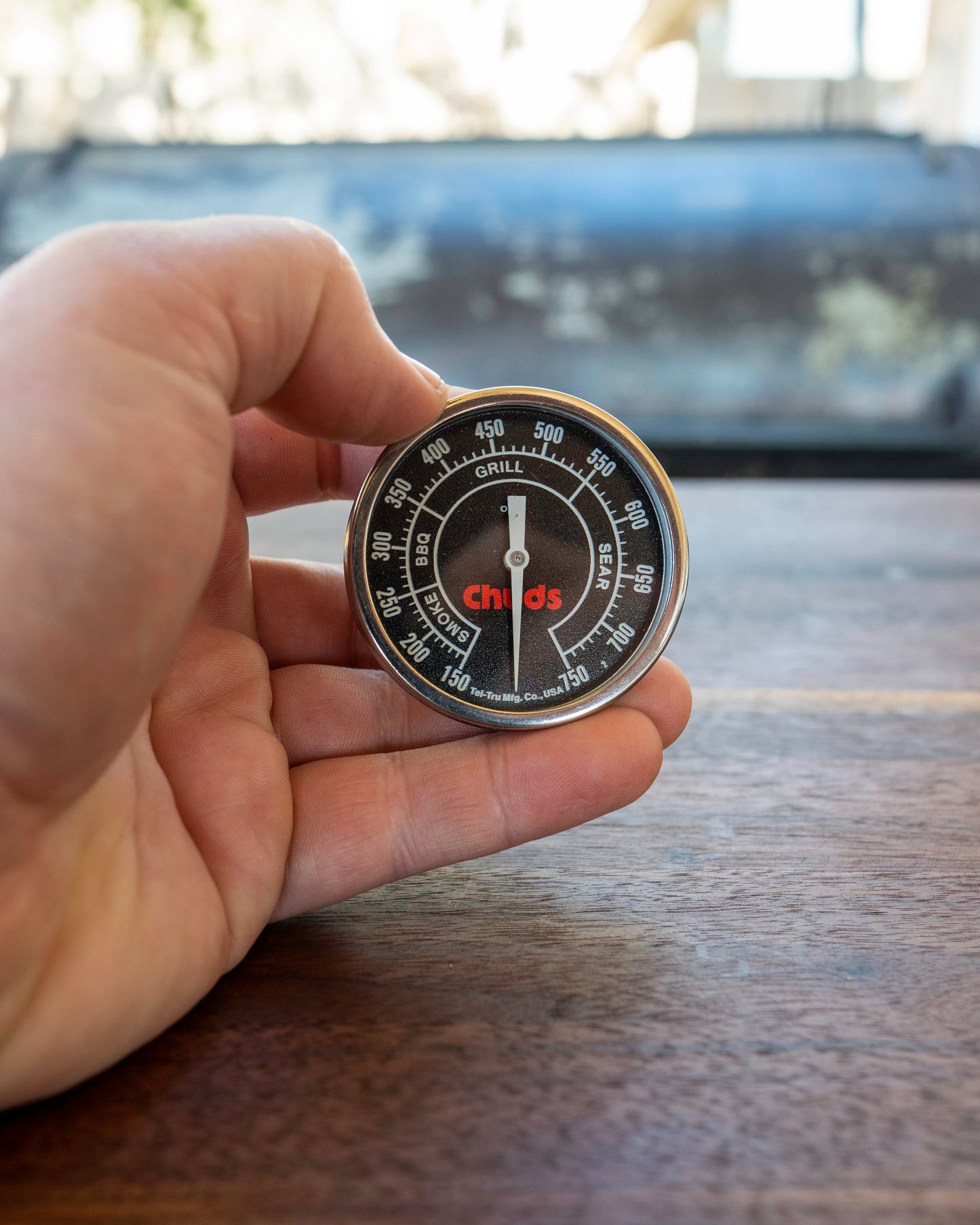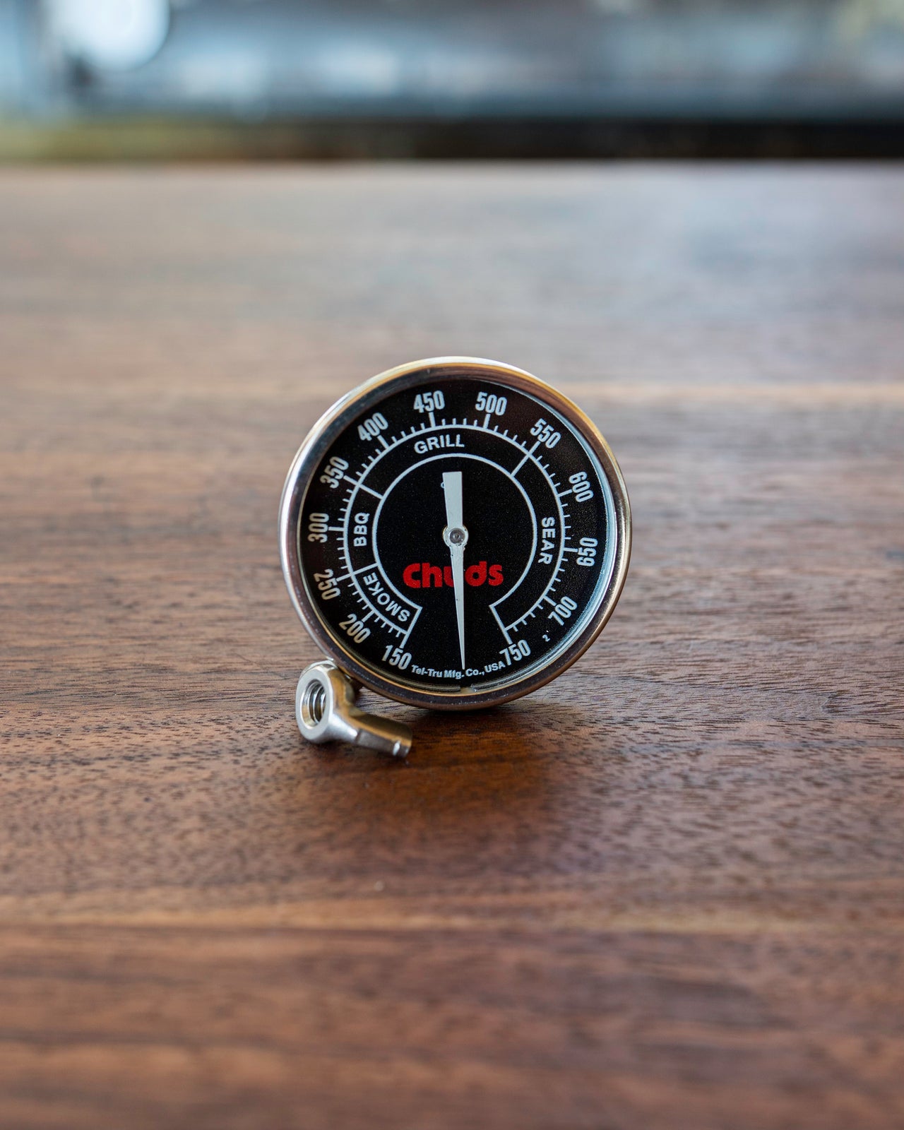 These Tel-Tru custom Chuds Grill Thermometers are great for high temp cooking, as well as low and slow. The perfect add-on for a well-rounded grill setup. Fits a 1/4" diameter hole.