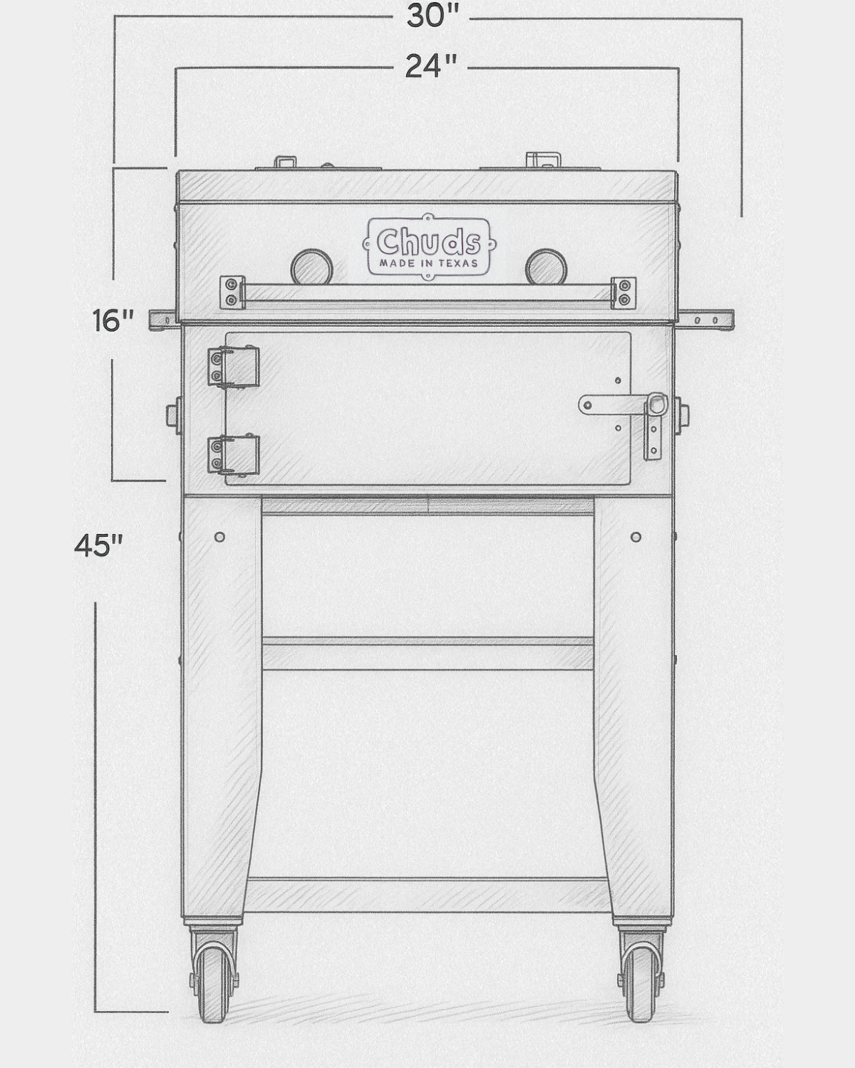 The Chud Box is a direct-heat, low-and-slow cooker that turns dripping fat into smoky flavor. Its 3/16" carbon steel construction delivers steady, easy temperature control.