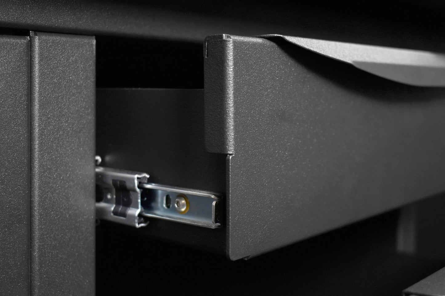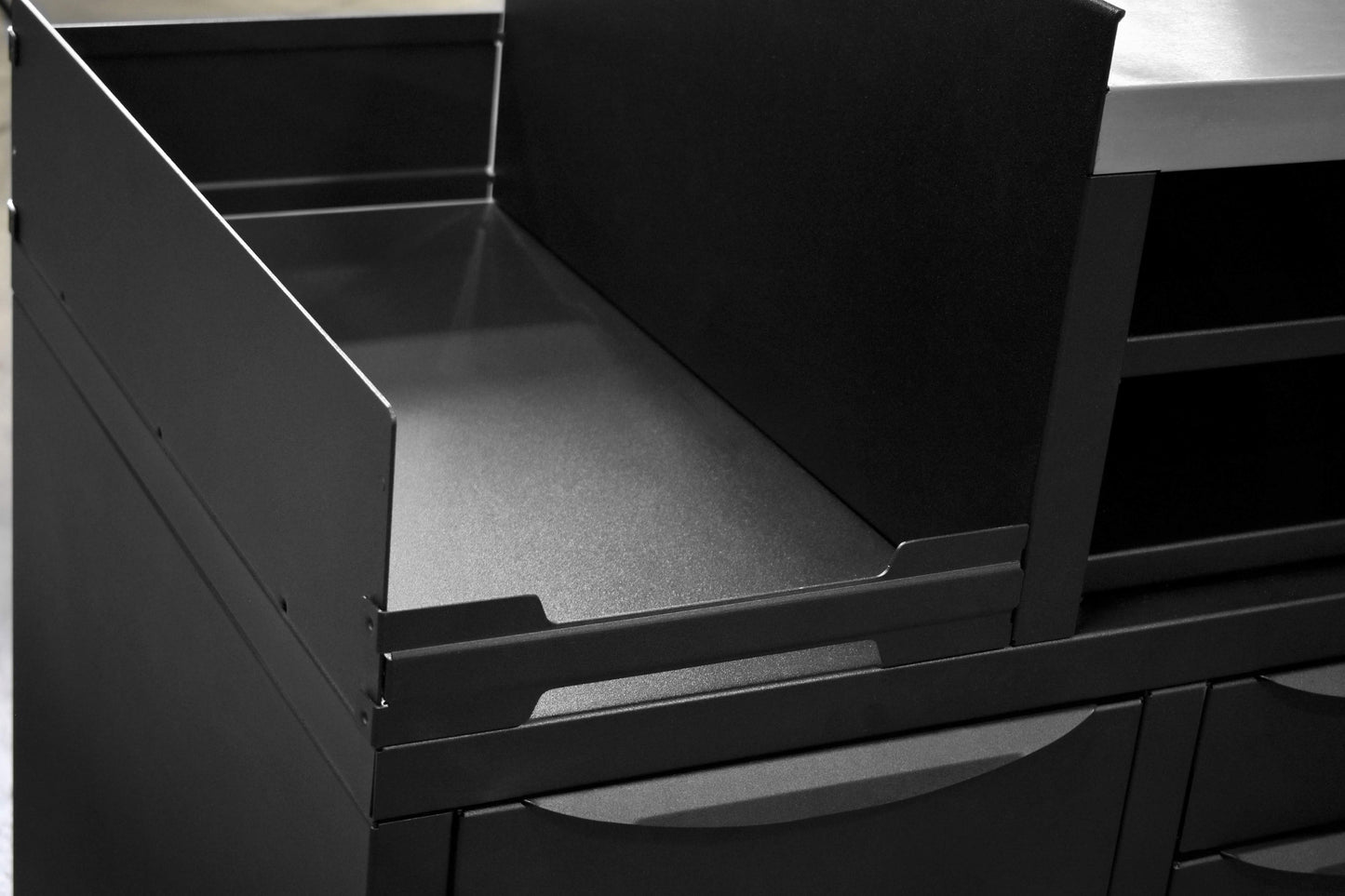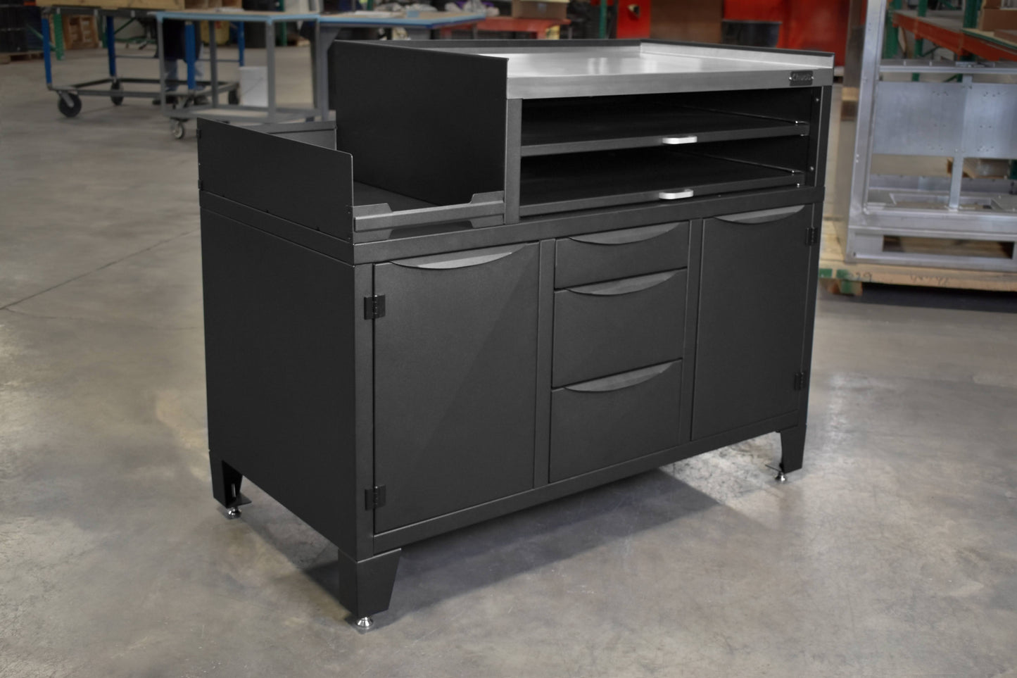 You can also add-on the drawers and doors, to make storage and organization easier and more weather resistant.